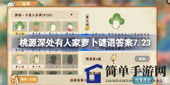 桃源深处有人家萝卜谜语答案7.23已经揭晓。感兴趣的朋友们,不妨参考这篇攻略,希望对大家有所帮助。想获取更多游戏攻略和资讯,请继续关注我们。