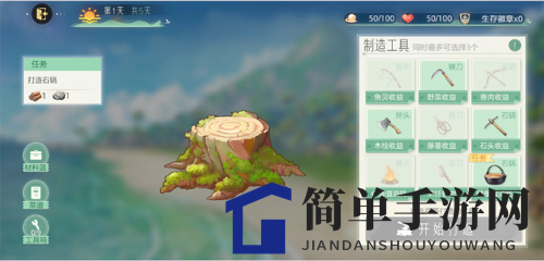 制作工具时,需消耗1次行动采集所需物品。当心情体力>30时,优先探索,其次搜集,最后制造。