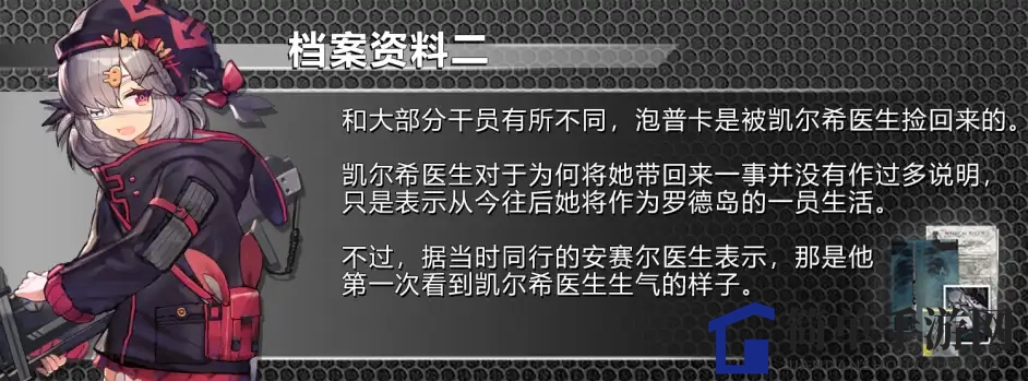 根据泡普卡的档案记载,她被凯尔希医生带回罗德岛,而安塞尔则回忆起那是他首次见到凯尔希医生愤怒的一面。这一切都让我们对泡普卡的经历充满好奇,此次剧情为我们揭示了她的过往。