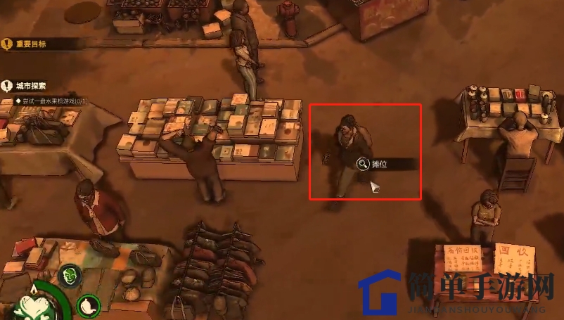4、找到空摊位,当摊位按钮呈现放大镜形状时,即可启动摆摊模式。