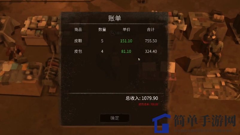 6、摆摊完毕,系统将展示账单,玩家可查阅总收入。