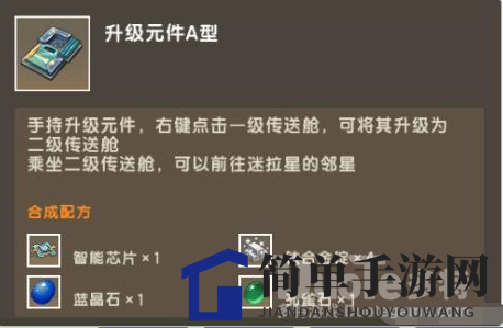 传送舱也有升级要求。若要传送至其他星系,还需将传送舱升级至二级,这同样需要特定物品,也就是这个
