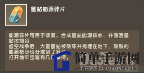 这个介绍非常直白明了,手持能源核心点击控制方块即可激活一个星站。大家不要搞错了,是点击控制台,不是传送舱哦。只需要4个星站能源碎片,这个过程还是很简单的。