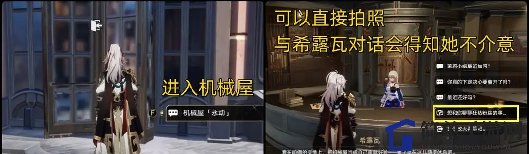 “机械屋”旁的女孩希望我们能帮她拿到希露瓦的照片,有点像隔壁的“艾伯特”,进入机械屋内拍照帮她圆梦,即可获得奖励。
