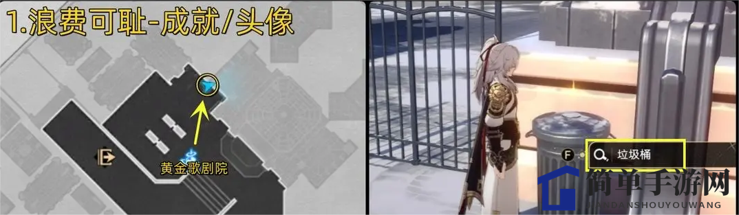 前往“黄金歌剧院”,在地图上方翻动垃圾桶,首次翻动即可获得头像,再次翻动则有汽水和成就等待。