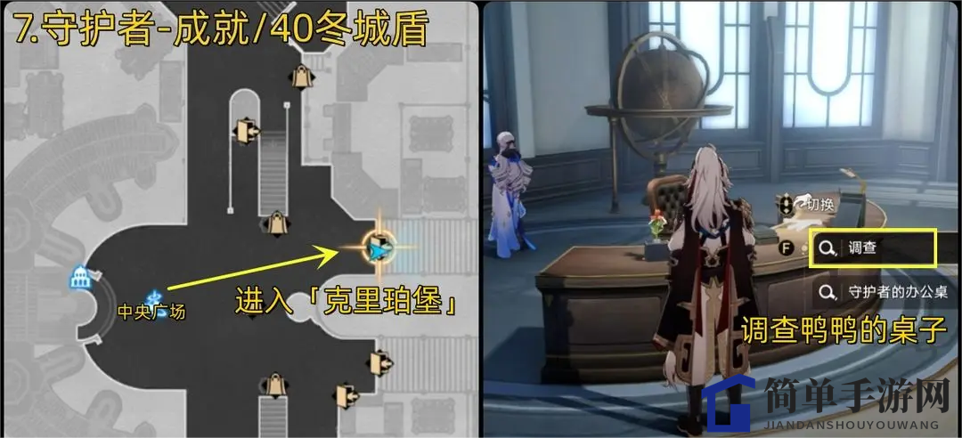 进入“克里珀堡”,调查守护者的办公桌和旁边的星球仪,根据图上选项选择,即可获得奖励。