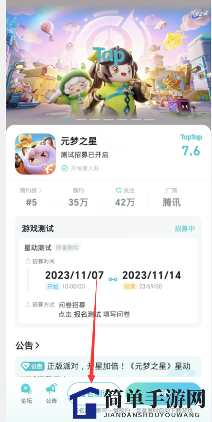 2. 进入游戏页面,点击下方的【报名测试】按钮;