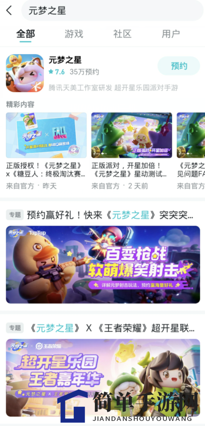 1. 访问taptap官网,于搜索栏输入“元梦之星”;