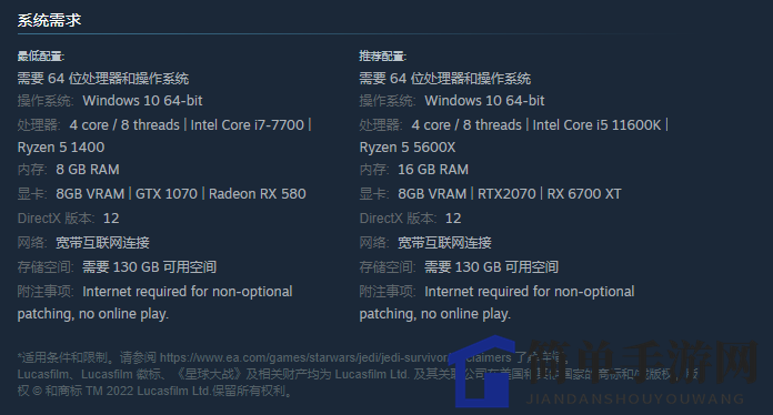 宇宙深处,一场新的星际冒险即将拉开帷幕——备受期待的《星球大战绝地幸存者》(Star Wars Jedi: Survivor)将于4月28日震撼登场。今日,官方揭晓了这款游戏的PC硬件需求,玩家若想体验这场星际之旅,至少需要配备GTX 1070显卡。赶快来了解一下吧!