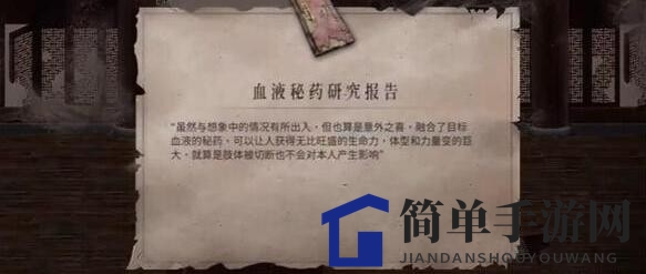 3、战胜敌人后,血液秘药研究报告将现身,赶紧拾取吧!